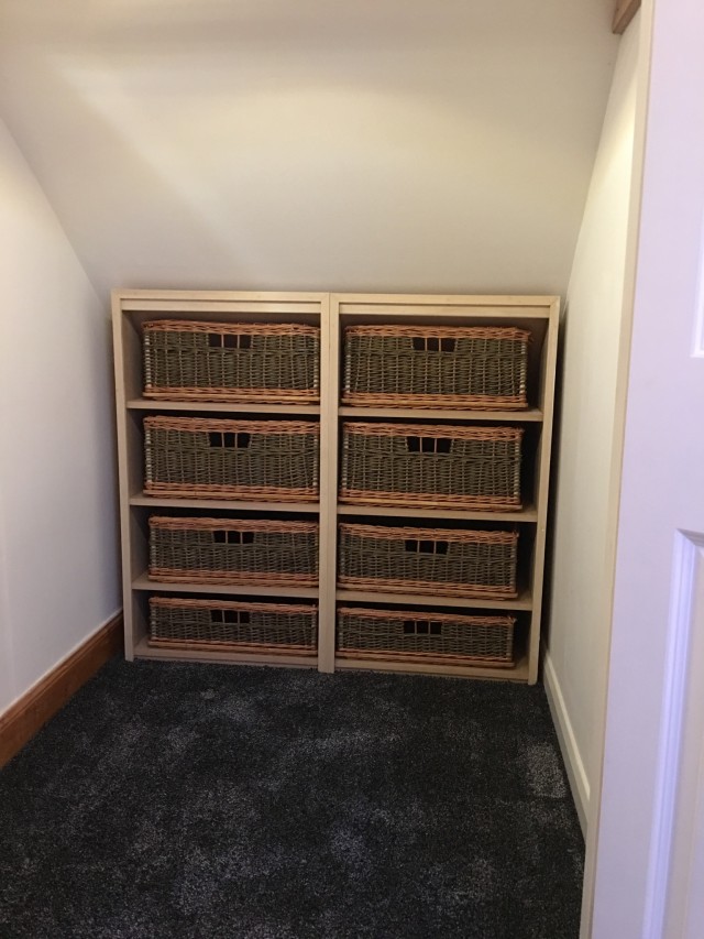 My latest commission - Specially designed to fit the very precise measurements of this under eaves shelved space. Quite a challenge!